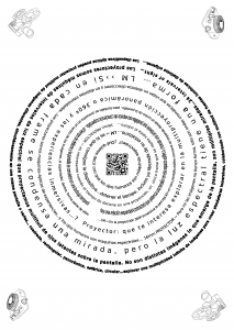 LM: la idea es reducir al mínimo los elementos que forman el dispositivo cinematográfico. Trabajando con menos elementos pero teniendo un control mas profundo sobre ellos. Lam limitación de usar solo 2 metros de película revelada totalmente negra es muy estimulante. Forzándome a mi mismo a tener control de cada frame con cada uno de los elementos de la proyección , luz , obturador y foco…