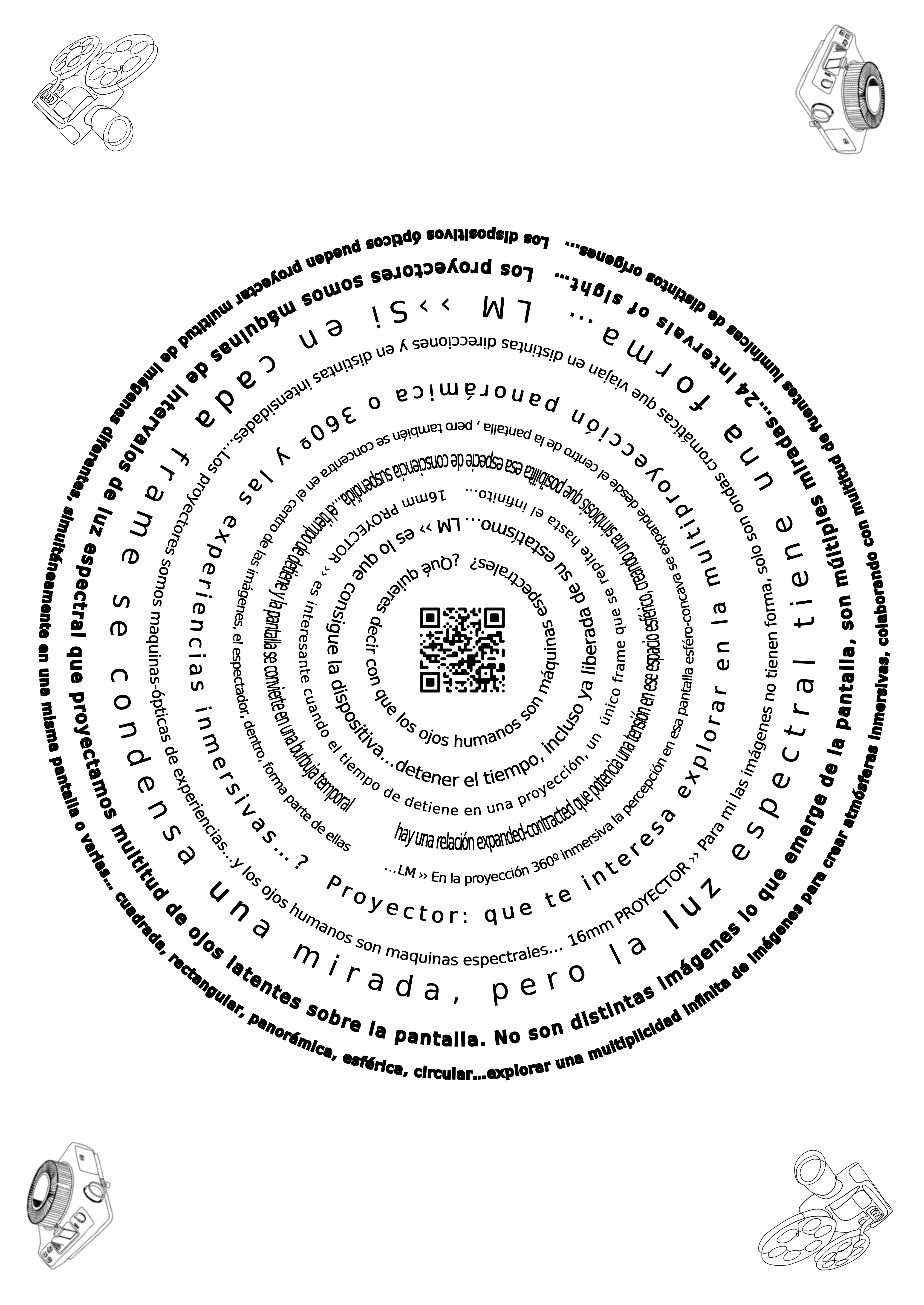 16mm PROYECTOR ›› Esa imagen no es igual porque no es una imagen… Los proyectores somos maquinas de intervalos de luz espectral que proyectamos multitud de ojos latentes sobre la pantalla. No son distintas imágenes lo que emerge de la pantalla, son múltiples miradas…*