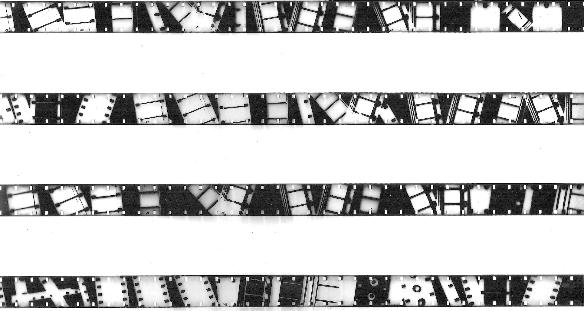 LM: La idea es reducir al mínimo los elementos que forman el dispositivo cinematográfico. Trabajando con menos elementos pero teniendo un control mas profundo sobre ellos. Lam limitación de usar solo 2 metros de película revelada totalmente negra es muy estimulante. Forzándome a mi mismo a tener control de cada frame con cada uno de los elementos de la proyección , luz , obturador y foco…